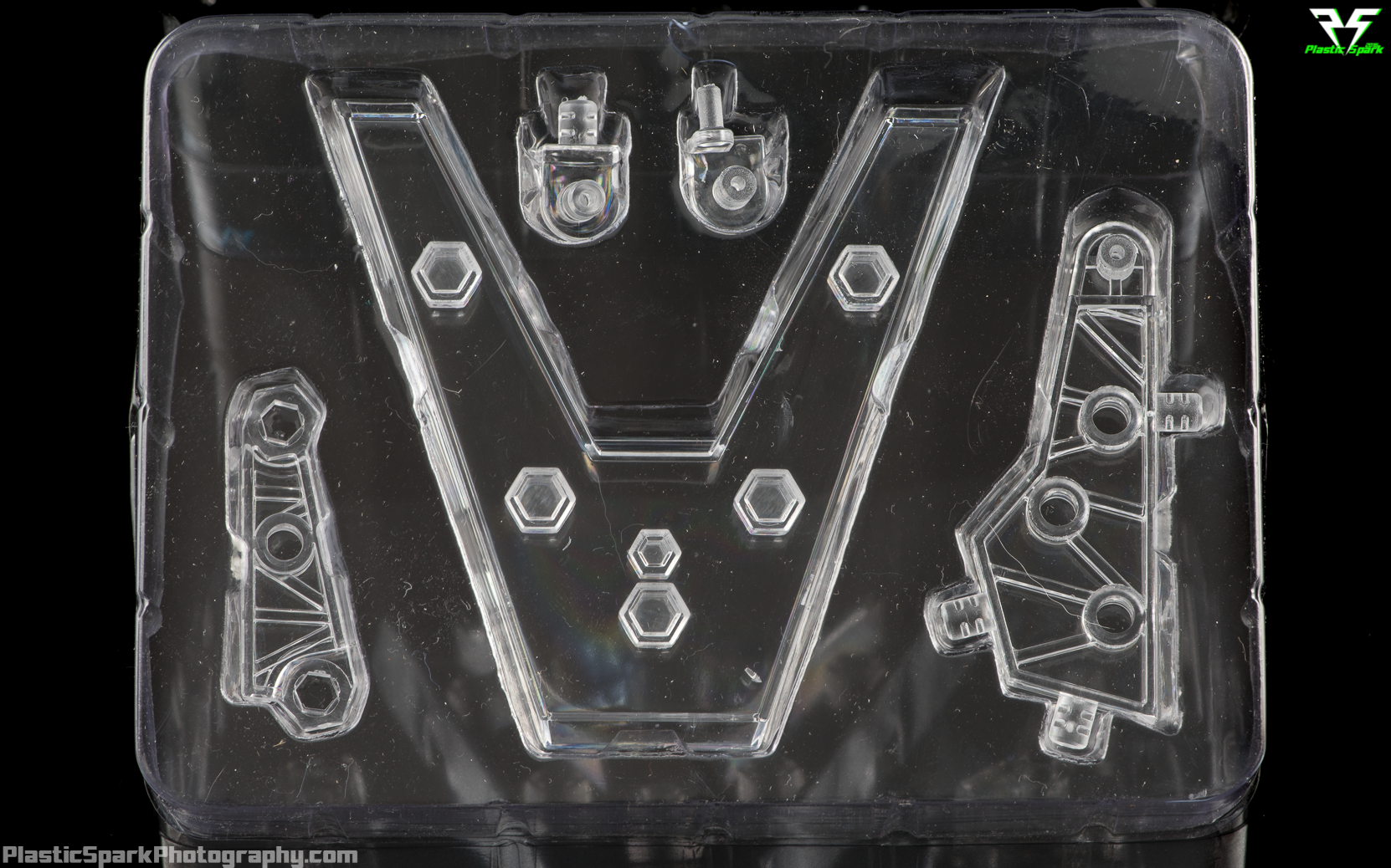 1 x 5 piece Transparent display stand. This was a nice surprise when I first saw solicits for PA. Iron Factory included an incredible display stand. The stand is made of 5 pieces, the base, the main riser, the secondary arm, and 2 mounting posts in 3mm and 5mm sizes. The stand clips together very tight and it is incredibly stable. You may get some plastic squeak or snapping noises when adjusting the arms the first few times. This will go away after a few adjustments and I haven't noticed any cracks or stress marks like I do on my Tamashii stands. I like that they included both 3mm and 5mm mounting posts so that this stand can be used for a number of figures in your collection. This was a great addition as I have found myself constantly wishing I had a display stand with a 5mm port as all the Tamashii stands are 3mm. PA has a 3mm port on the back of her pelvis that can be plugged in to the stand for dynamic robot mode poses. I was able to use the 5mm adapter to plug in Windsaber using the ports on the bottom of her turbine blades. There are also multiple mounting points on the base so you can add more arms for dynamic display options, Tamashii arms fit in perfectly. I would legitimately buy more of these stands as a standalone item.
